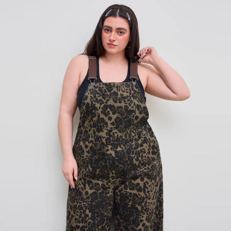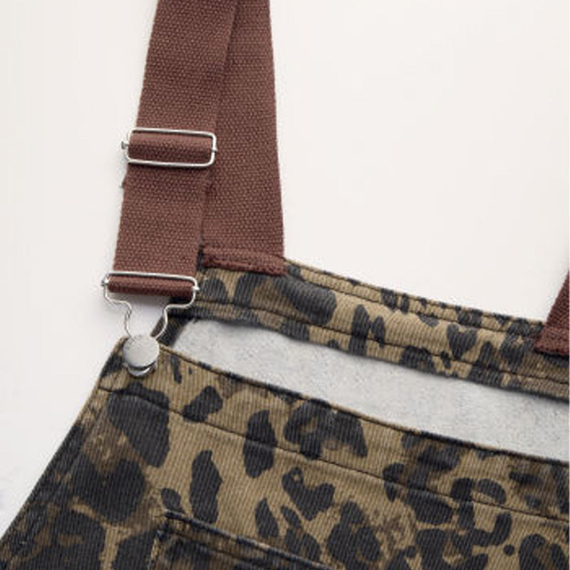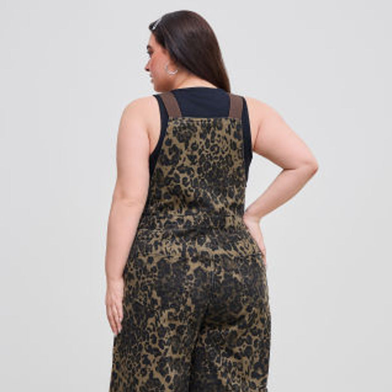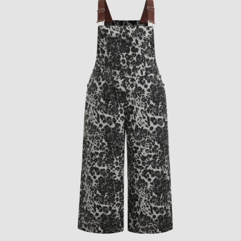 Women's Leopard Print Buckle-Up Wide Leg Overall Jumpsuit